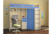 Кровать-чердак "Астра" дуб молочный-голубой